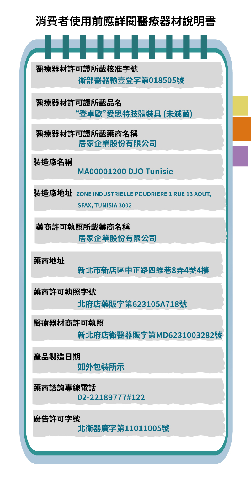 | 醫療器材許可證所載藥商名稱: | 居家企業股份有限公司 | |||